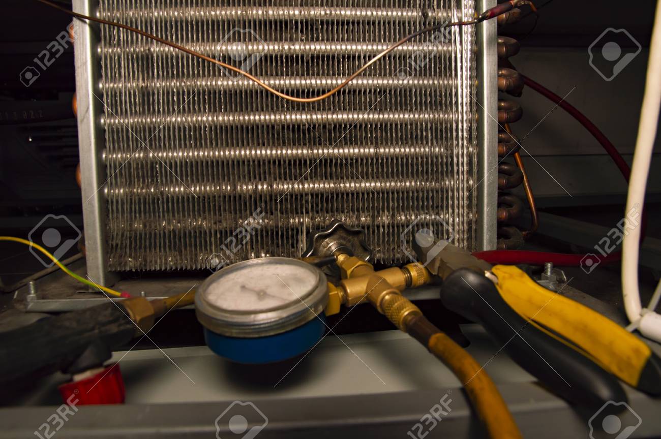 refrigerator repair equipment and tools of a specialist in work stock photo image by c malaha3 252622958