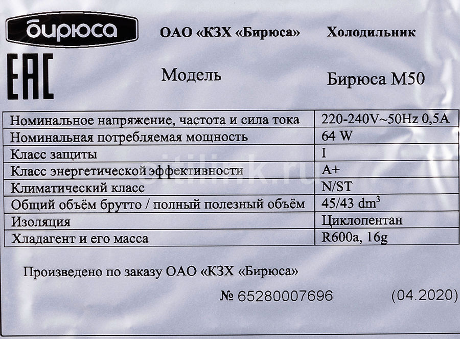 holodilnik biryusa 50