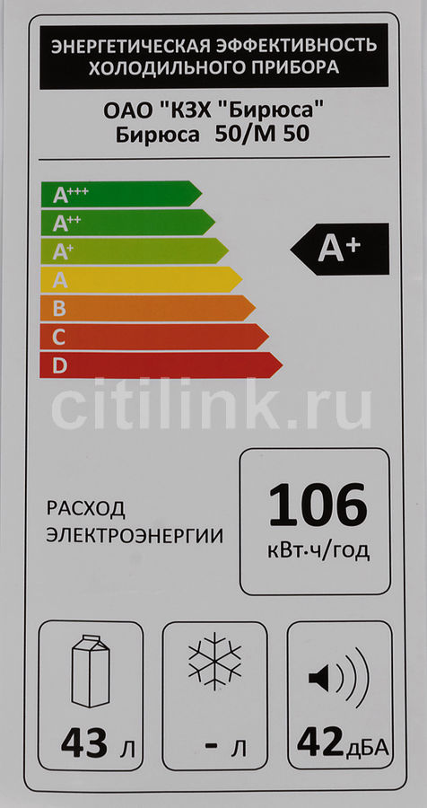 holodilnik biryusa 109 odnokamernyj klass a 115 l belyj