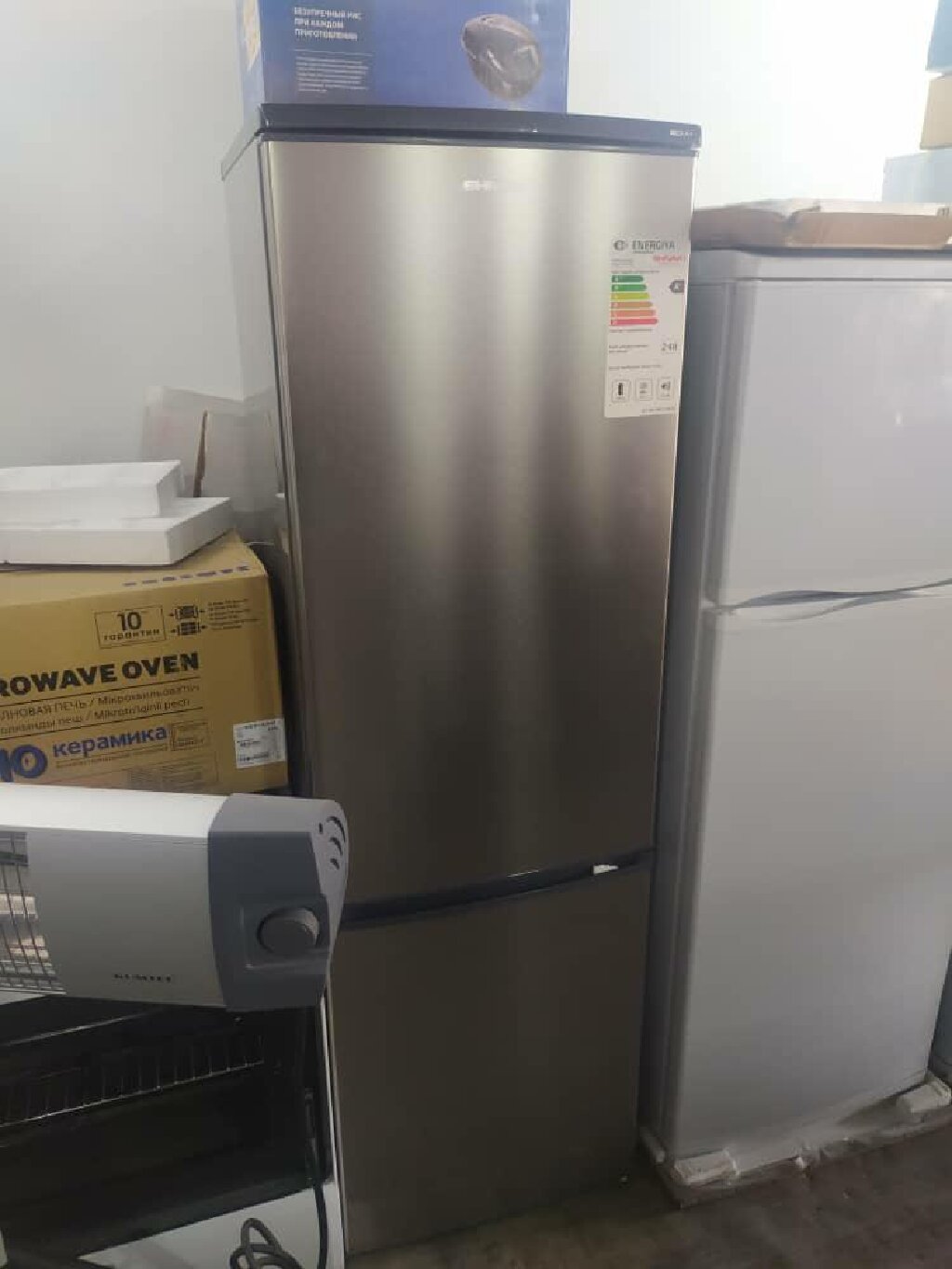 novyj dvuhkamernyj seryj holodilnik